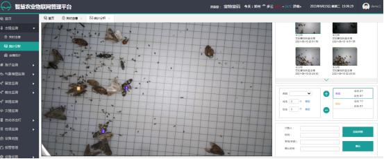 4、蟲情圖像拍照:配置1200萬(wàn)像素高清攝像頭,自動(dòng)拍攝的圖片可實(shí)時(shí)上傳至遠(yuǎn)端平臺(tái),平臺(tái)自動(dòng)記錄每個(gè)時(shí)間段采集的圖片數(shù)據(jù)并進(jìn)行分析。