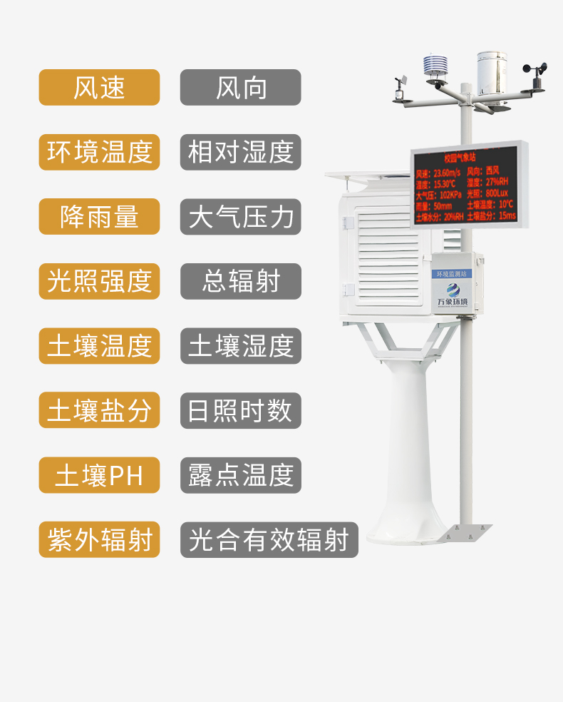 山東萬象環(huán)境科技有限公司官網(wǎng)主要產(chǎn)品有防爆氣象站,校園氣象站,農(nóng)業(yè)氣象站,負(fù)氧離子監(jiān)測站,超聲波氣象站,歡迎咨詢13645368788!