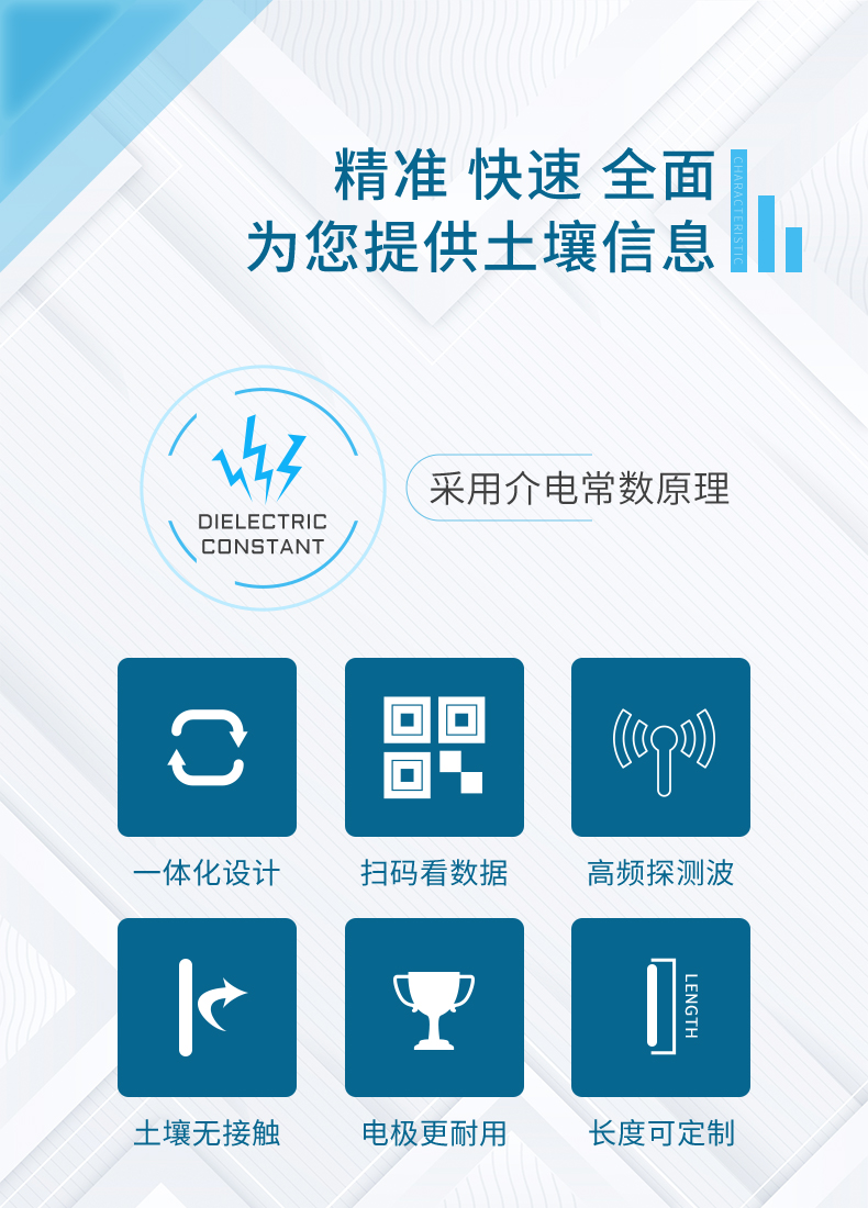 WX-GSSQ10管式土壤墑情監(jiān)測儀(具備省級CMA證書)是一款基于介電常數原理而研發(fā)的傳感器,可以針對不同土層的水分、溫度含量進行快速、準確、全面監(jiān)測。該傳感器監(jiān)測層數支持定制,最低可測三層土壤溫濕度,最高可測十層土壤溫濕度。
