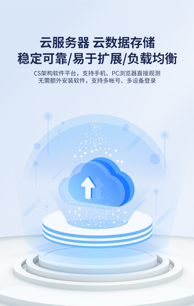 1.CS架構軟件平臺,支持手機、PC瀏覽器直接觀測、無需額外安裝軟件。