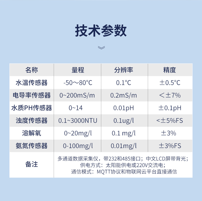 多通道數(shù)據采集儀,帶232和485接口;中文LCD屏帶背光;供電方式:太陽能供電或220V交流電;通信模式:MQTT協(xié)議和物聯(lián)網云平臺直接通信;